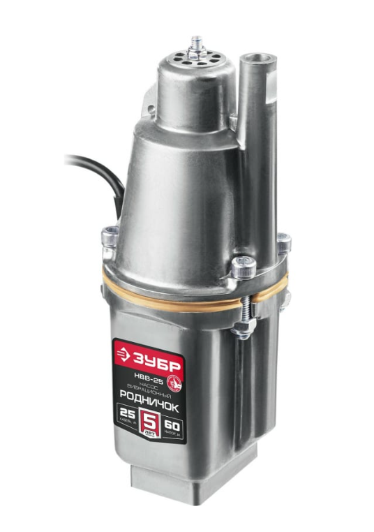 Вибрационный насос с верхним забором воды ЗУБР Родничок-В кабель 25 м НВВ-25 - идеальное устройство для перекачивания жидкостей, благодаря своей производительности, простоте конструкции и неприхотливости в эксплуатации. Может использоваться при осушении емкостей, для забора воды из скважин и колодцев, осушения затопленных мест, откачки воды из подвалов, аэрации и циркуляции воды.