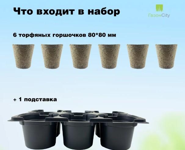 Набор из 6 торфяных горшков 80*80 с подставкой
