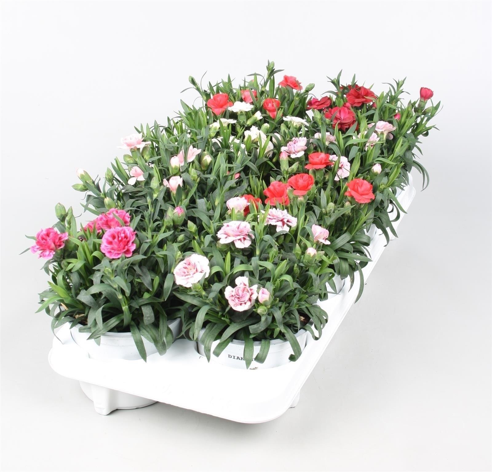 Гвоздика Mix – гибрид, стойкий к похолоданиям. Группа включает гвоздику с цветками различной цветовой гаммы: от белых, нежно-розовых до насыщенных красных тонов.