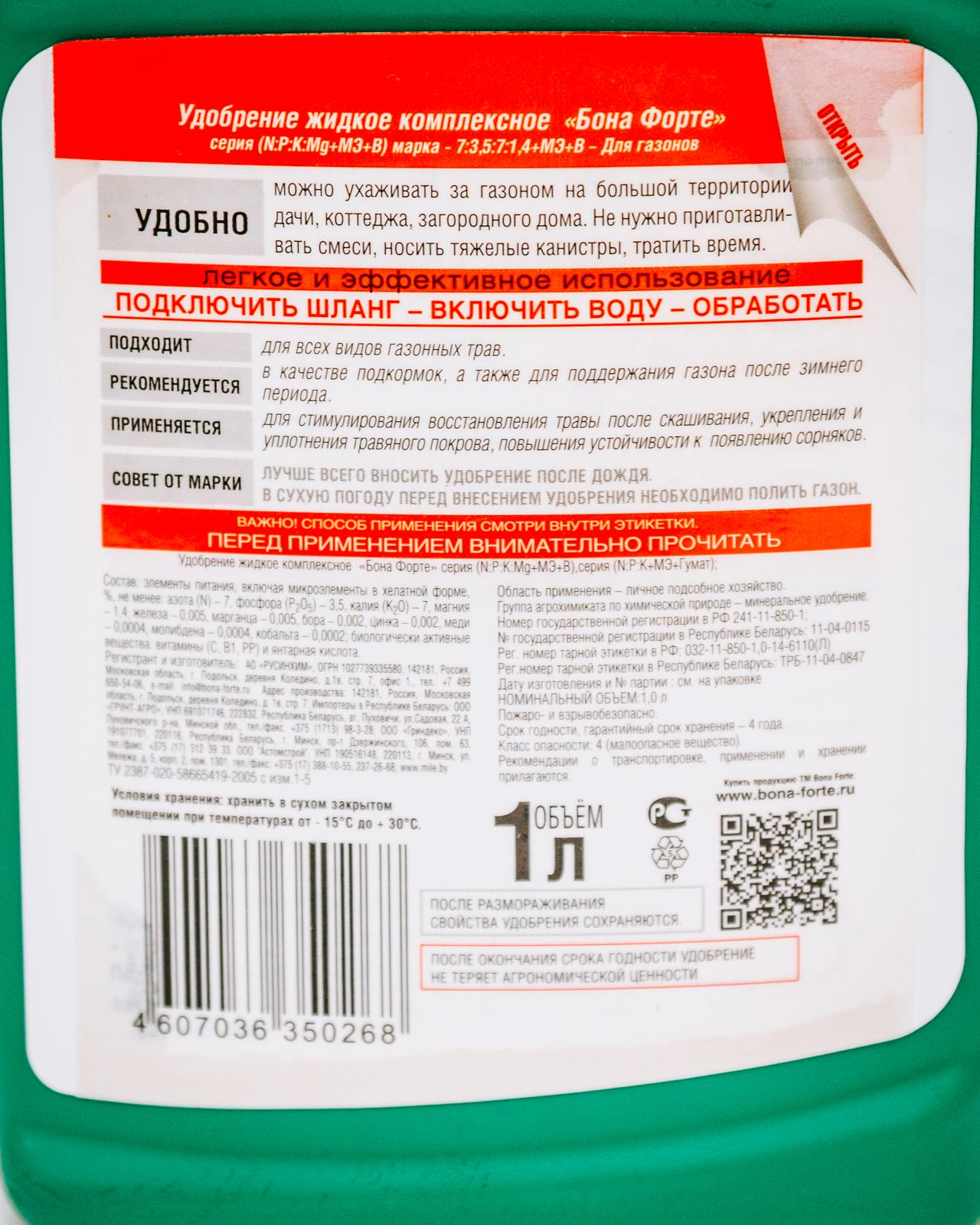 Удобрения для газона 1л - 2л