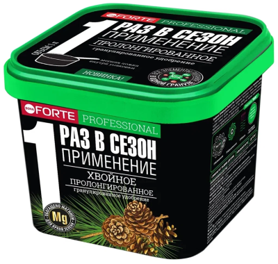 добрение гранулированное хвойное с биодоступным кремнием ведро 1 л ;- Произведено по уникальной передовой технологии "SIIOG",обеспечивающей важные качественные преимущества перед традиционным смешением:- Равномерное внесение -благодаря содержанию всех компонентов в одной грануле растение гарантированно обеспечивается КАЖДЫМ элементом питания.- Расход одного ведра:- при основном внесении: до 58кв.м.- при подкормке: до 46кв.м.- **Мерная ложка внутри упаковки -40г.**- Мера веса удобрения (ориент.):- чайная ложка- 5г,столовая ложка-15 г.- СОСТАВ:- Три основных макроэлемента (NPK): азот (N)- 2,5 %, фосфор (P2O5)- 5 %, калий (K2O)- 8 %;- Si: биодоступный кремний- 27%;- Мезоэлементы: магний- 1 %, кальций- 0,25 %;- Семь микроэлементов: бор, железо, марганец, цинк, медь, молибден, медь;- Микроэлементы находятся в хелатной (легкоусваиваемой) форме;- Комплекс витаминов: B1, В6, В12, PP, С;- Стимулятор роста: янтарная кислота.