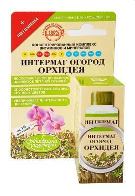 Удобрение витамины для растений Октябрина Апрелевна Итермаг Огород Орхидея 10 мл 4620771200452 – минеральное удобрение для подкормки всех видов орхидей. Содержит все необходимые питательные элементы для гармоничного развития культур. Препарат способствует образованию крупных соцветий и увеличивает продолжительность цветения.