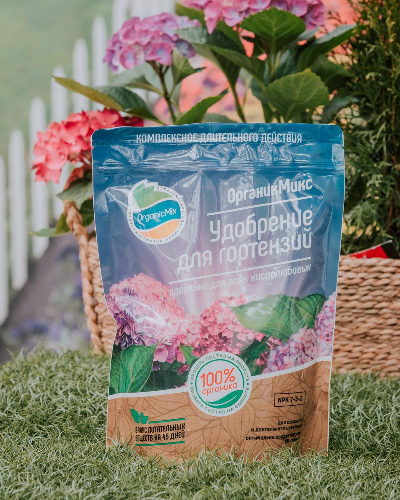 Удобрение для гортензий Органик Микс – комплексное средство, содержащее в себе необходимые макро- и микроэлементы в органической форме. Препарат закисляет почву, благодаря чему подойдет для всех кислолюбивых культур (голубики, азалий, рододендронов). Обеспечивает красивый внешний вид, обильное и длительное цветение. Мощный стимулятор роста и иммунитета. Удобрение оптимально корректирует ph почвы, ускоряет образование гумуса, восстанавливает плодородие почвы, уменьшает потребность в поливе.