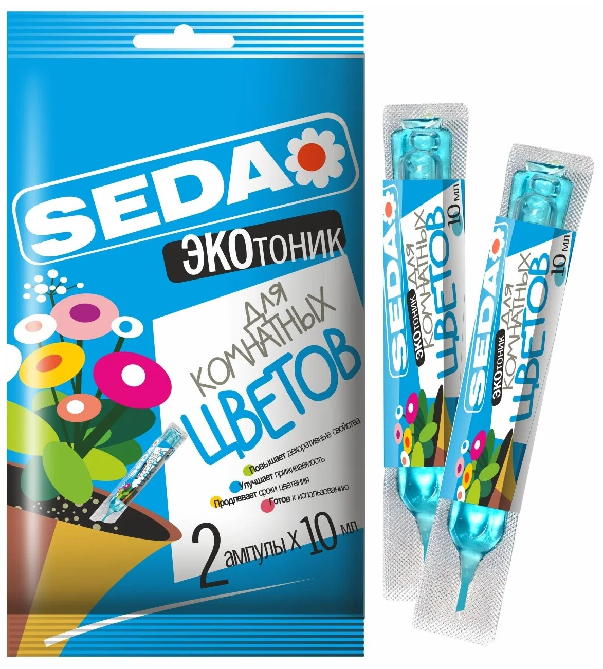 ЭКОтоник "Для комнатных цветов" SEDA 2х10мл стимуляция активного роста и адаптации при пересадке. Повышение декоративных свойств растений. Продление сроков цветения. Биологическая защита от грибковых, вирусных и бактериальных заболеваний. Снятие стресса от негативных воздействий окружающей среды. Улучшение корнеобразования и приживаемости. ЭКОтоник "Для орхидей" SEDA 2х10мл увеличение количества бутонов и интенсивности цветения. Активация роста и адаптации при пересадке. Биологическая защита от грибковых, вирусных и бактериальных заболеваний. Снятие стресса от негативных воздействий окружающей среды. Улучшения корнеобразования и приживаемости. Особенности: Готовый к использованию. Защита от болезней. Экологически безопасен. Эффект активатора.
