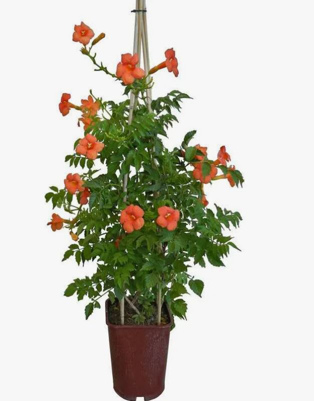 Campsis radicans 'Flamenco'.Принадлежит к семейству Bignoniaceae - бигониевидные. Родина-Сев.Америка.
